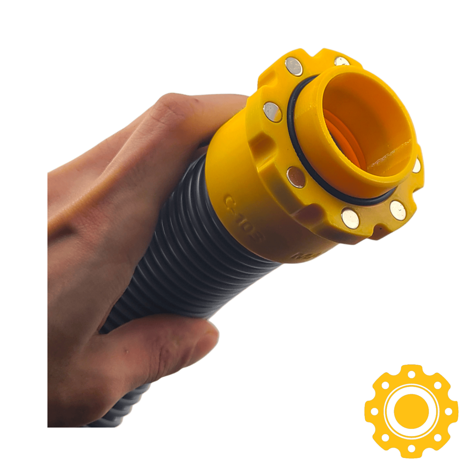 This 1-3/8″ (35mm) Cen-Tec Varioflex dust extractor hose adapter will allow you to connect your hose to another hose or a dust extractor quickly and easily without fiddling with hard-to-press buttons, tabs, or clamps. This is the MALE end — in our system, the male end points toward the vacuum source, and the female end points toward the tool.