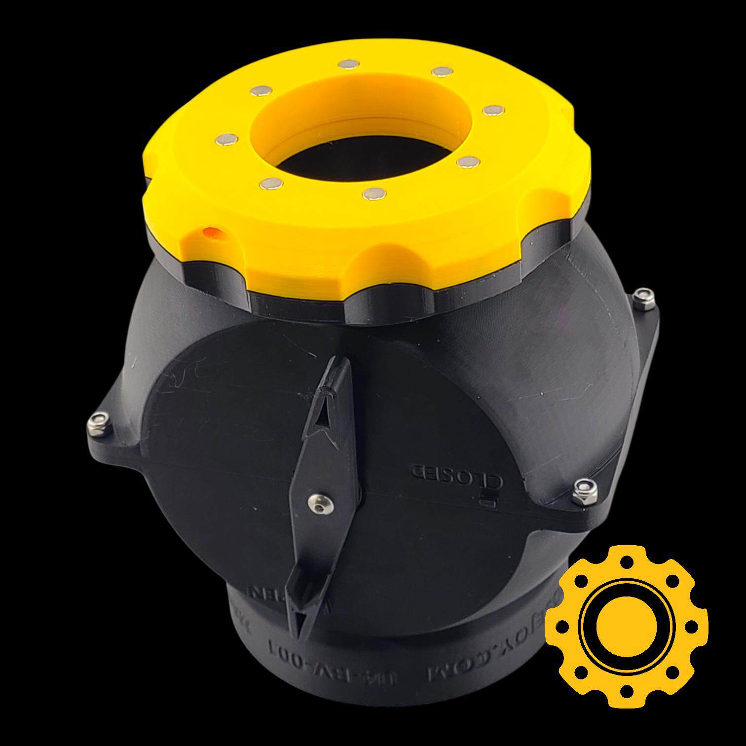 This ball valve blast gate doesn’t restrict air at all, never clogs, and shuts airtight. One end is designed to fit over standard 4″ PVC pipe, and the other end has a female magnetic connector that accepts our U4 series magnetic hose connectors and size-down adapters. *Note that these ball valves are designed to work with our flex hose adapters, sold separately. If you would like one that connects to PVC pipe on both ends, just message us! We also offer these in the U2 size that will connect to 2″ and 2.5″ PVC and our 2.5″ magnetic hose adapters.*