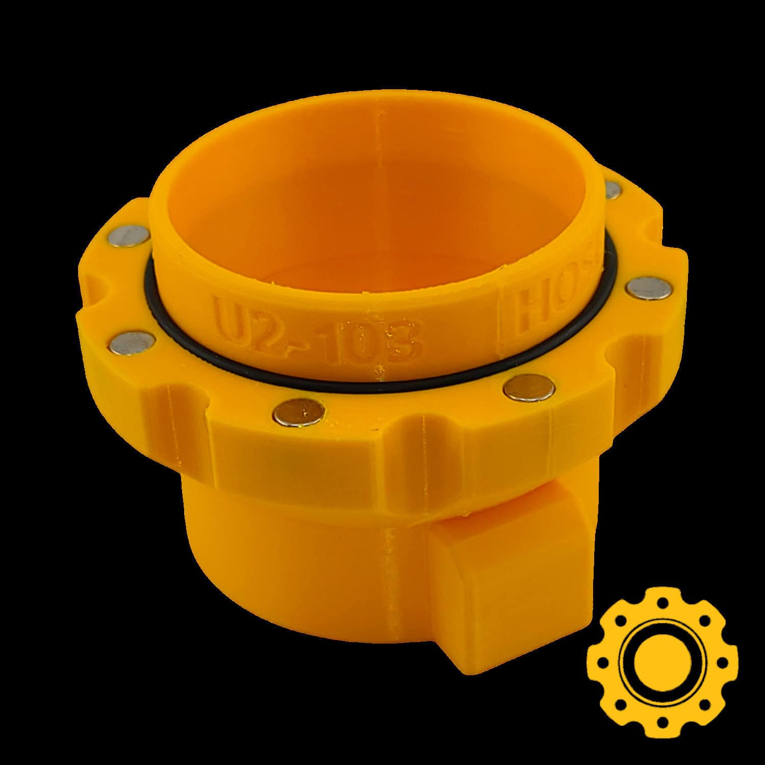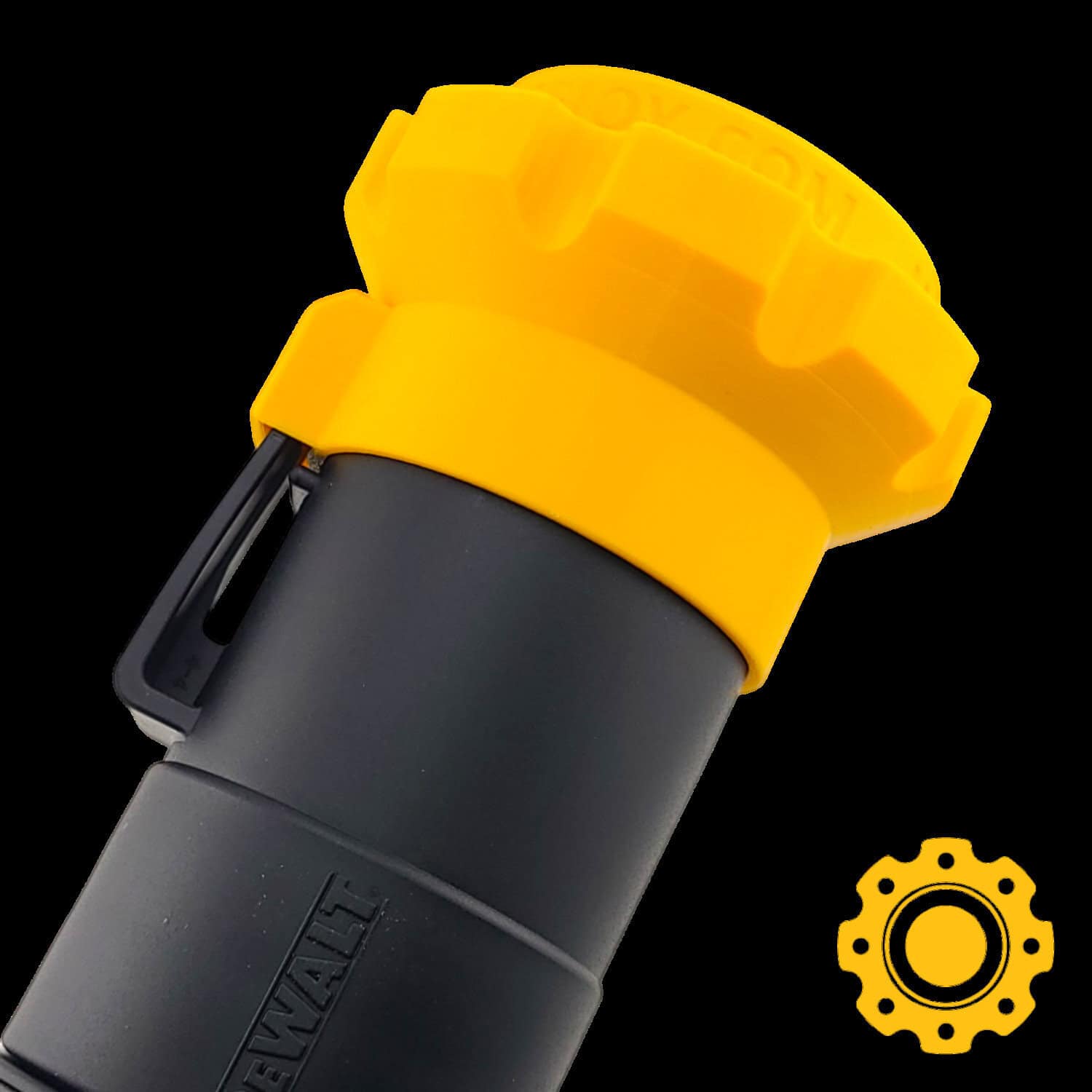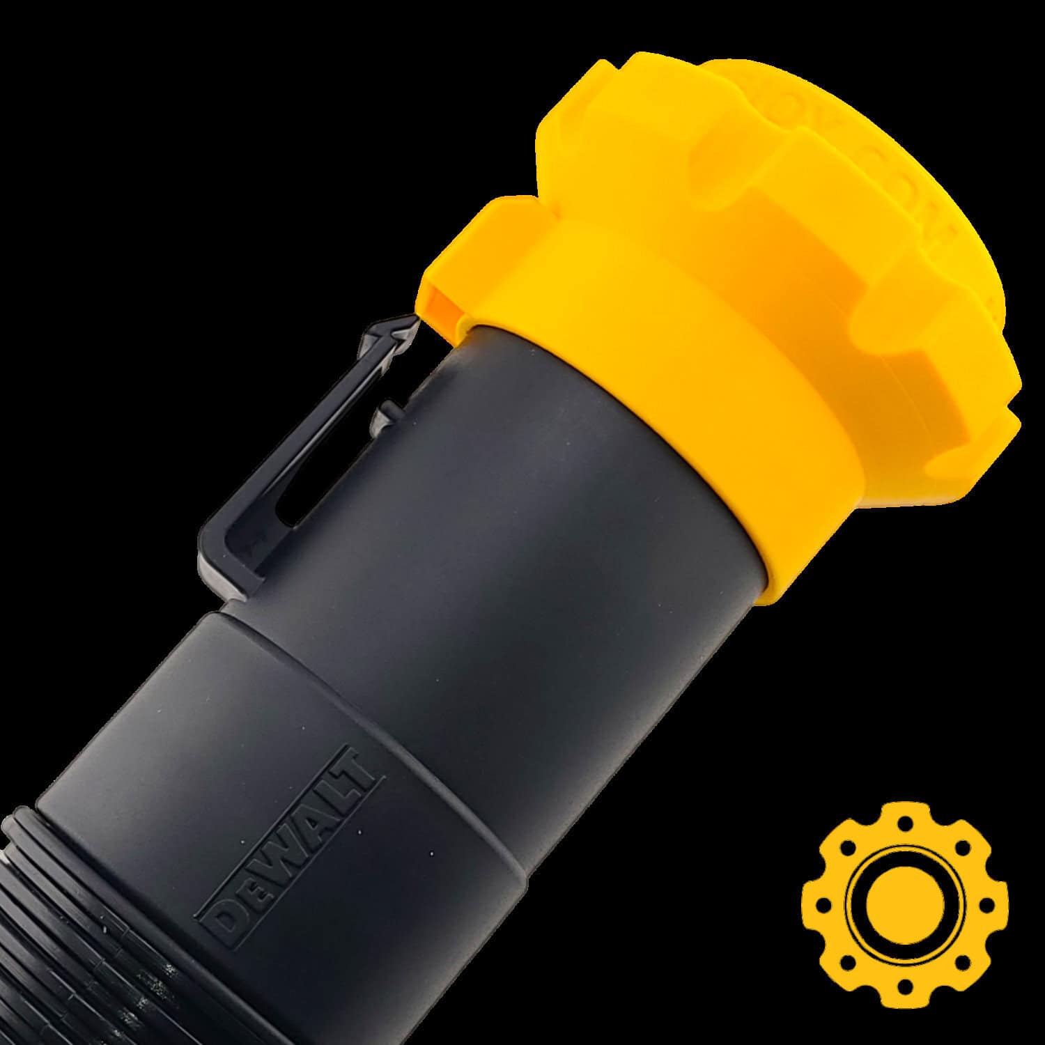 Magnetic adapter for DeWalt 2-1/2″ shop vac hose with locking barb.