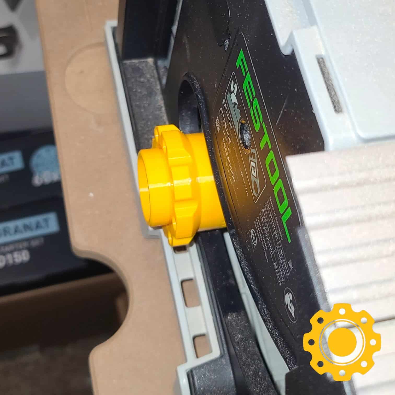 This adapter connects to your Festool CSC SYS 50 table saw’s dust port via twist and lock.