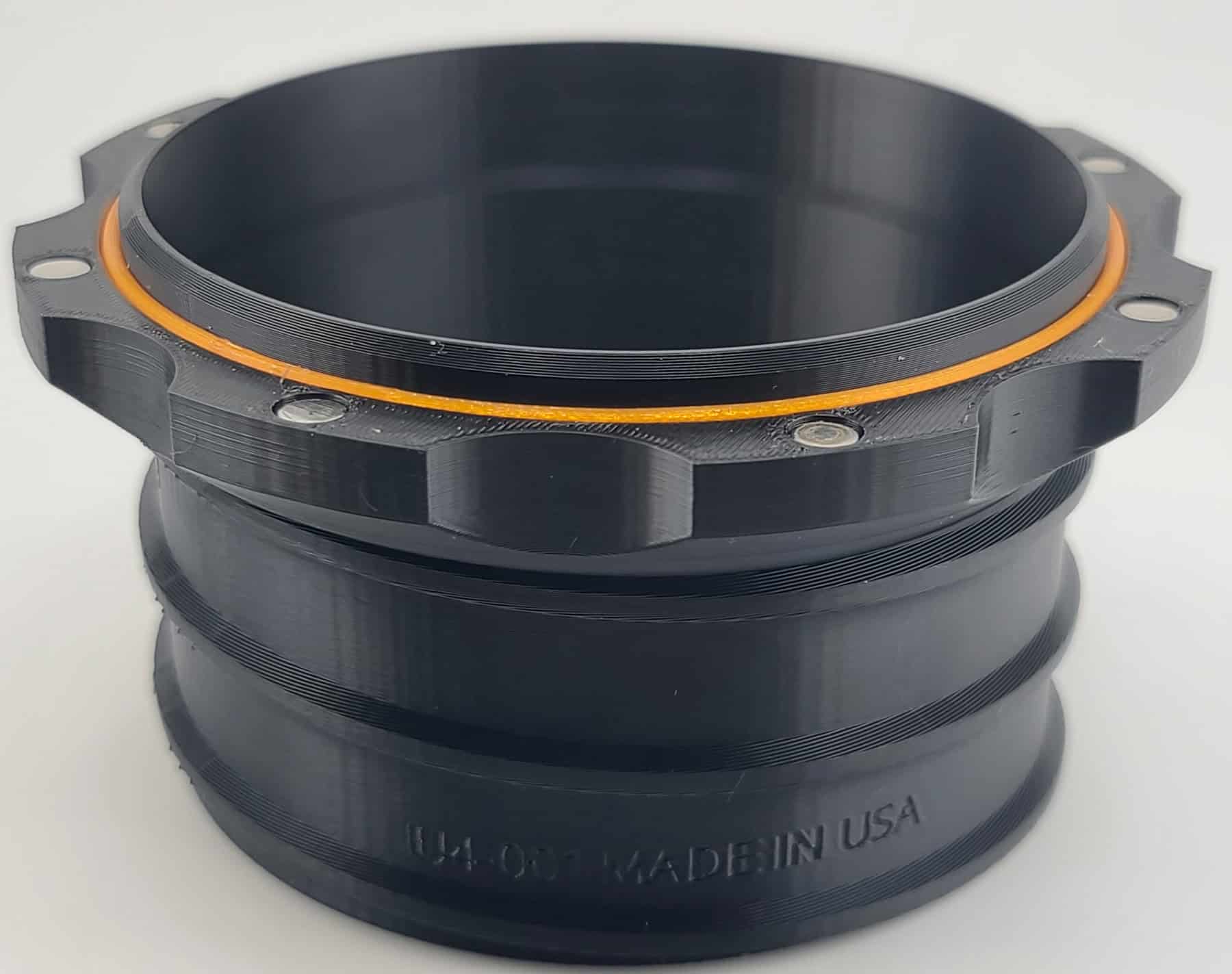Magnetic 4 inch flex hose adapter (male) designed to connect 4″ flex hose to dust collectors or other hoses quickly as part of the HoseJoy system.