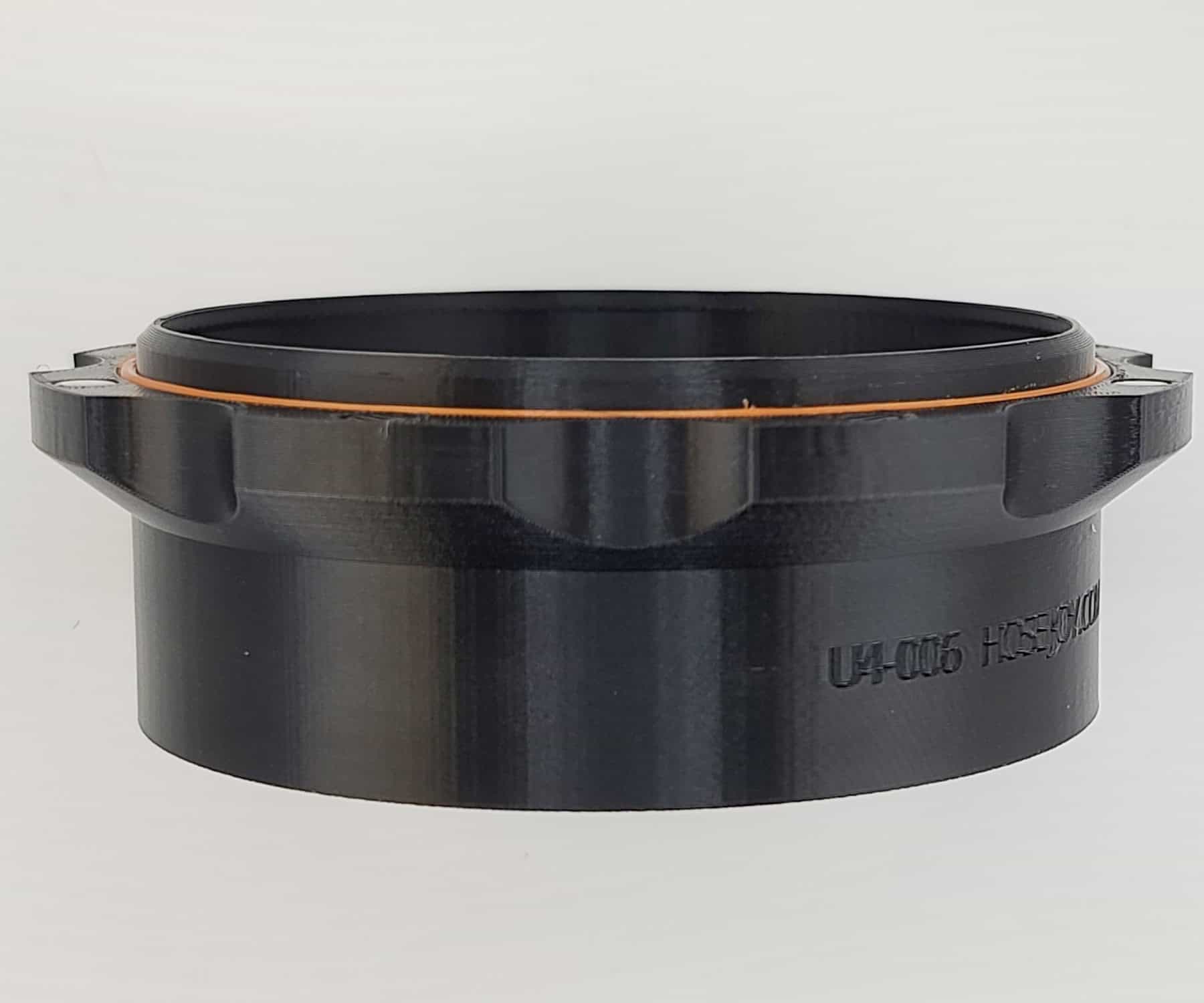 Magnetic 4 inch tool port adapter for dust collection tools, designed to move a 4″ flex hose between machines quickly as part of the HoseJoy system.