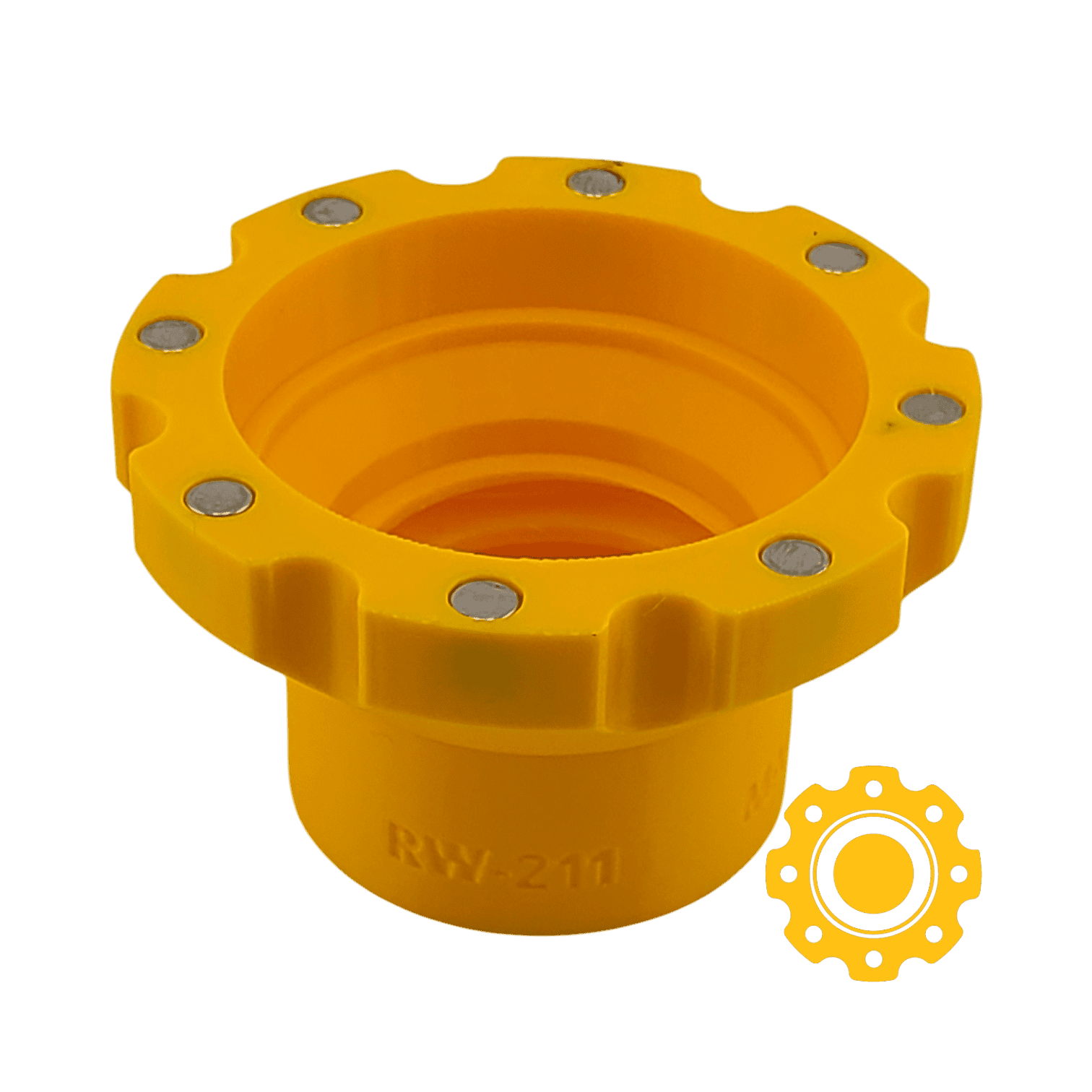 This 1-1/2″ hose adapter will allow you to connect your Rockler hose to another hose or a tool port quickly and easily without fiddling with hard-to-press buttons, tabs, or clamps. This is the FEMALE end — in our system, the male end points toward the vacuum source, and the female end points toward the tool.